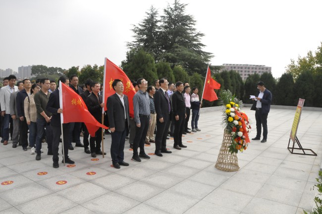 全體黨員胸佩黨章,整齊列隊,靜默肅立,懷著無比崇敬的心情瞻仰革命烈士紀念碑。朱宏、沈波向革命先烈敬獻花籃,全體同誌鞠躬致敬。麵對著鮮紅黨旗,全體黨員舉起右拳,重溫入黨誓詞,表達不忘初心、牢記使命,為共產主義事業奮鬥終身的堅定政治信念。宣誓結束後,全體黨員緩步繞行革命烈士塔一周,表達了對先烈的無限哀思和崇高敬意。