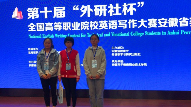 10月20日,2019“外研社杯”全國高職高專英語寫作大賽安徽省複賽在安徽電子信息職業技術學院順利舉行,來自全省近百所高校的一百多名選手進入本次英語寫作大賽複賽,代表我校參賽的學生均榮獲佳績。
