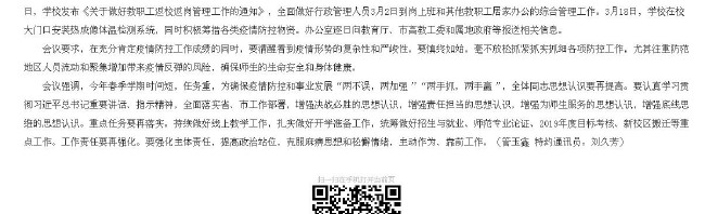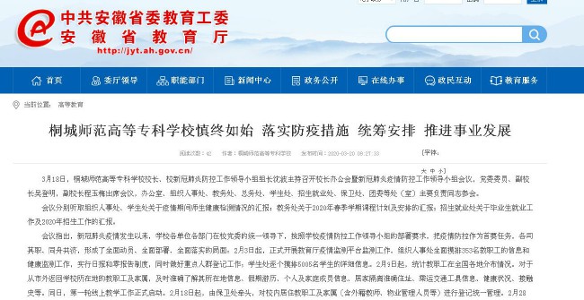 安徽教育網:《桐城師範高等專科學校慎終如始 落實防疫措施 統籌安排 推進事業發展》