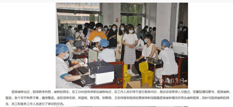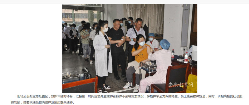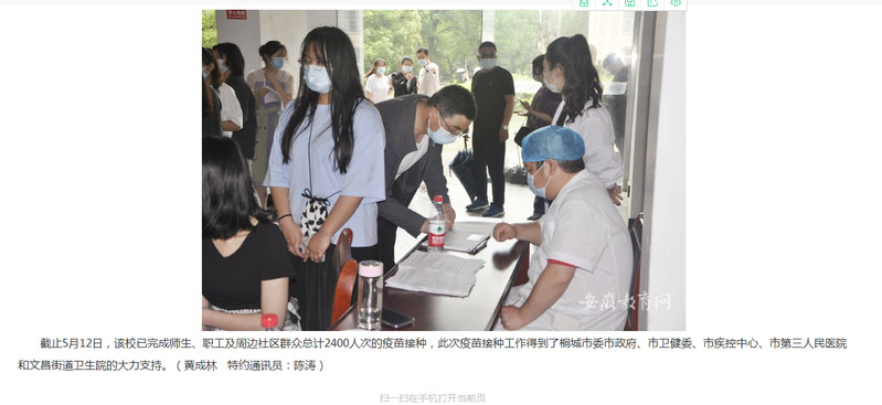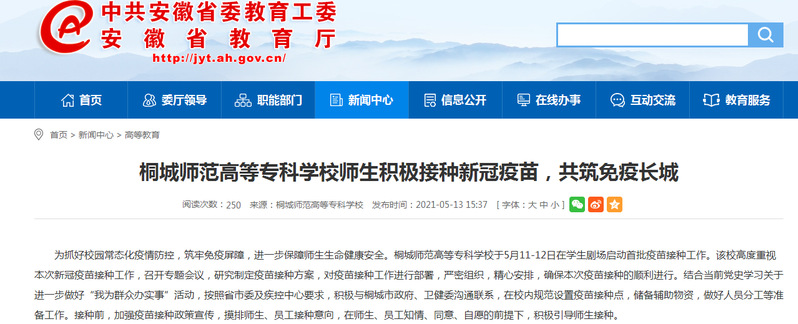 安徽教育網《桐城師範高等專科學校師生積極接種新冠疫苗,共築免疫長城》