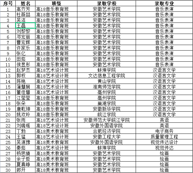 近日,安徽省2021年專生本招生考試錄取傳來喜訊,經過同學們的刻苦努力、老師們的精心指導,藝術與設計係30名同學分別被安徽藝術學院、安徽工程大學、黃山學院等本科學校錄取。