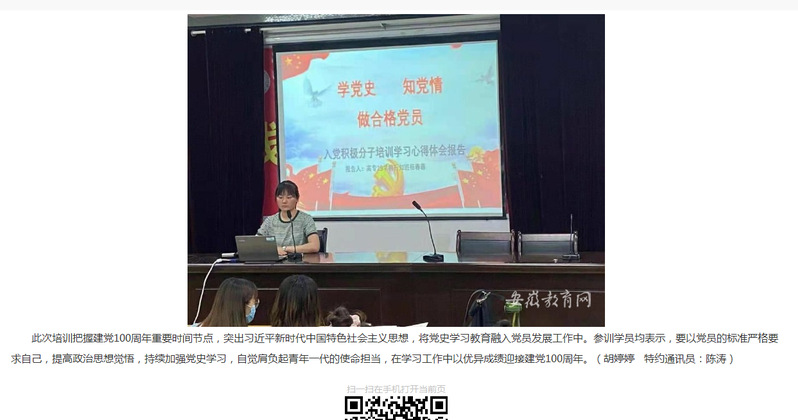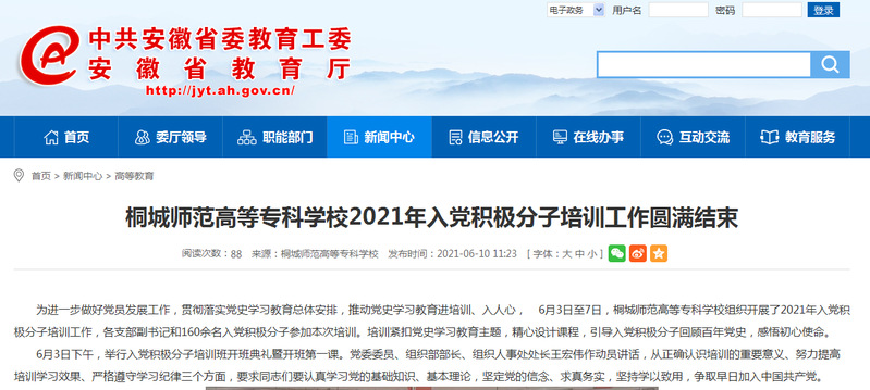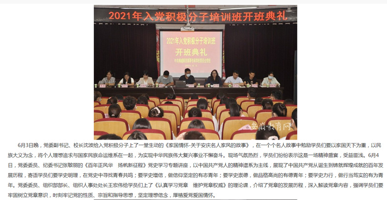 安徽教育網:《桐城師範高等專科學校2021年入黨積極分子培訓工作圓滿結束》