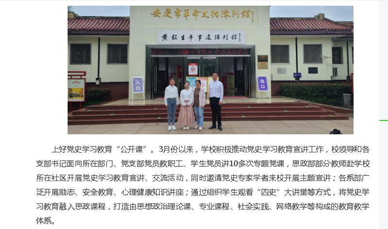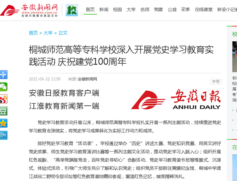 安徽新聞網:《桐城師範高等專科學校深入開展黨史學習教育慶祝建黨100周年》