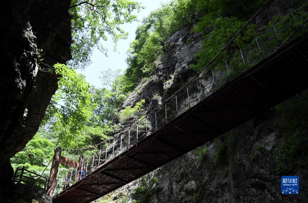 5月30日,遊客在位於陝西省柞水縣的牛背梁國家森林公園內遊玩。 新華社記者 李一博 攝