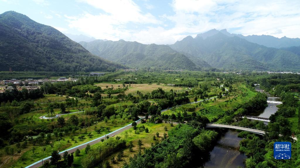 這是陝西省西安市長安區秦嶺違建別墅“群賢別業”拆除後建設的秦嶺和諧森林公園(2019年7月26日攝,無人機照片)。 新華社記者 劉瀟 攝