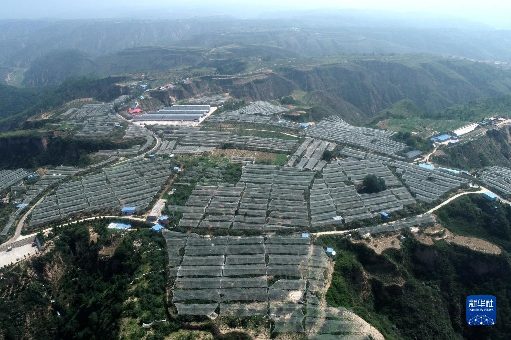 2020年7月29日拍攝的陝西省延安市延川縣梁家河村山地蘋果園(無人機照片)。 新華社記者 張博文 攝