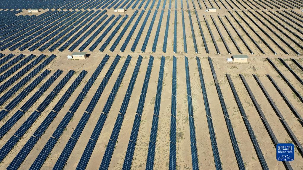 這是6月13日拍攝的甘肅省金昌市西坡光伏產業園區的光伏發電陣列(無人機照片)。新華社記者 陳斌 攝