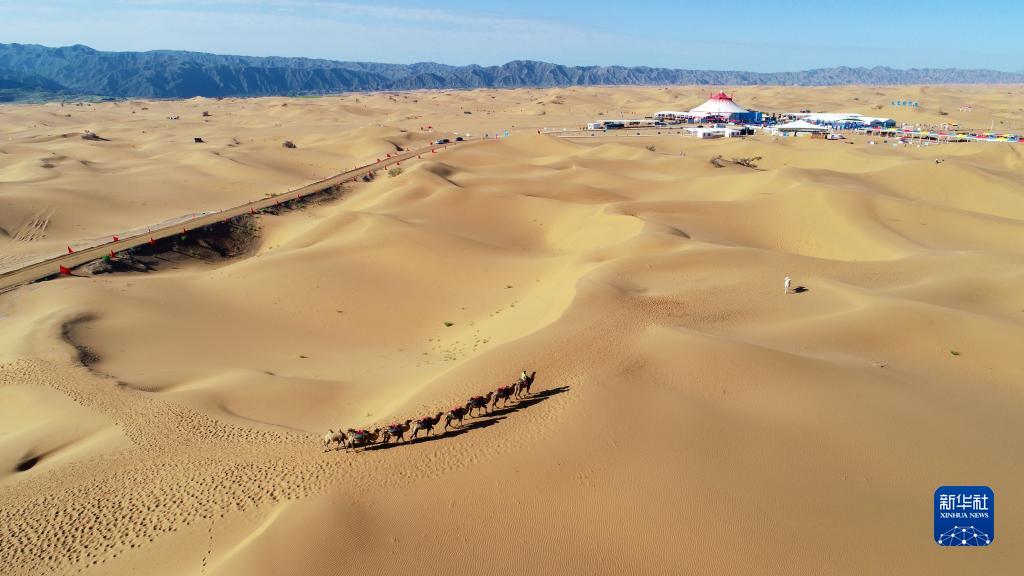 這是在寧夏中衛市拍攝的騰格裏沙漠(無人機照片,2018年9月7日攝)。新華社記者 王鵬 攝