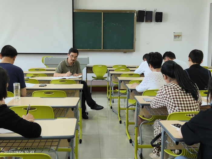 沈波認真聆聽了兩位老師的授課,重點關注了教學過程、教學方法、教學效果、學生狀態和教學設施等情況。課後,沈波與任課教師進行了交流,充分肯定了兩位老師的課堂教學的教學內容、教學方法、課堂效果及理論水平,同時就教材使用、教學方式方法、案例選取等方麵提出了意見和建議。