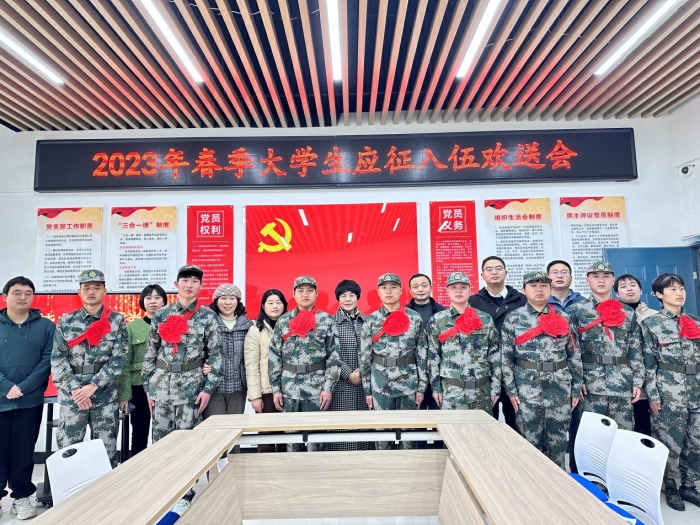 3月3日上午,我校在一站式學生社區舉行2023年春季大學生應征入伍歡送會。副校長程玉梅出席活動並講話,各係分管學生工作負責人、應征入伍大學生、畢業班輔導員參加歡送會。會議由學生處處長王斌主持。