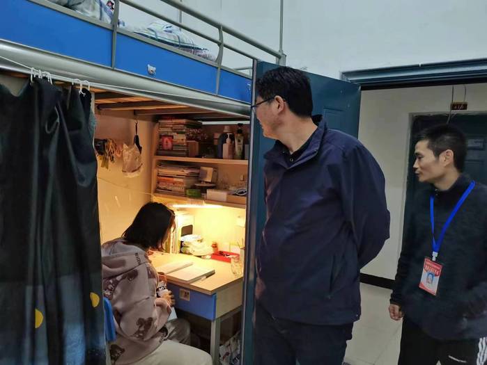 王宏偉還深入學生寢室,走訪慰問學生,了解學生的思想狀況和生活狀態,既一同熱烈交流黨和國家政治大事,又親切閑聊居住環境、室友關係等家常話題,將思政課聯到家長裏短,落到生活一線,沉到學生心坎。