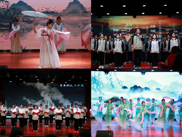 展演在慷慨激昂的朗誦表演《滿江紅》中拉開帷幕,藏不住的家國情懷,字字在心,句句回響,將現場活動氣氛迅速帶動起來。民樂合奏《美麗的神話》婉轉悠揚,為現場觀眾帶來了別具韻味的視聽享受。相聲表演《大文學家》包袱不斷,表演者們詼諧調侃的語言令在場觀眾捧腹大笑。古典舞群舞《采薇》以高山流水之形意賦嫋娜娉婷之美,國風舞蹈《禮儀之邦》以舞蹈的形式向大家展示了作揖禮、叉手禮、拱手禮和萬福禮等古代傳統禮儀。且挨過三冬四夏,暫受些此痛苦,雪盡後再看梅花,吟誦節目《百字銘》帶关键词2重回吳汝倫先生創辦學校的艱難時期。《黃梅戲串燒》讓廣大師生直觀深刻地感受到黃梅戲的獨特藝術魅力和特色文化的深厚底蘊。奮鬥正青春,青春獻給黨,最後演出在朗誦《青春獻禮二十大,強國有我新征程》和舞蹈《走向複興》中順利落下帷幕。