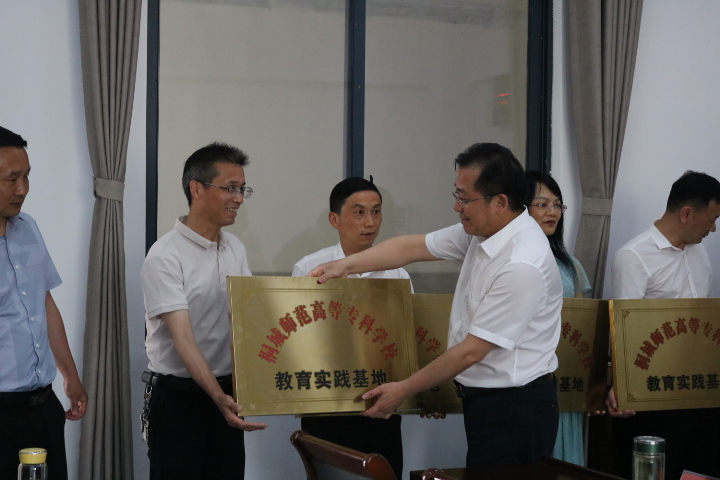 懷寧縣分管教育副縣長丁霞光、教育局局長陳小明熱情接待了王子龍一行,並在懷寧縣星拱小學組織召開了共建教育實習基地簽約暨授牌儀式。
