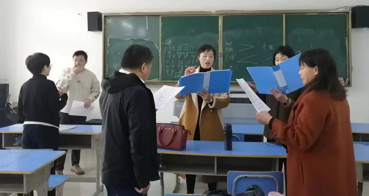 音樂教室裏,大家在一起切磋交流,認真排練,歌唱祖國歌頌黨恩,用嘹亮的歌聲唱出了昂揚的時代風貌。