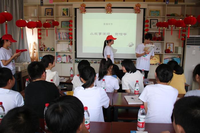 除了共讀活動,暑期閱讀推廣誌願服務團還趕赴桐城市青草文化站,與當地的初中生開展了閱讀分享會,團隊成員分別分享了《桐城風情》、《桐城往事》、《文化六尺巷》、《桐城諺語》等書籍的閱讀感悟,並通過小組討論、互動遊戲、故事演繹、朗誦等形式和學生們進行了桐城文化的碰撞和交流。