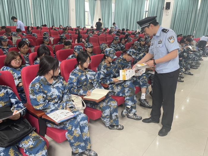 騙,授課老師重點講解了網絡兼職刷單詐騙、網絡購物詐騙、注銷校園貸詐騙、冒充客服退款詐騙、網絡貸款詐騙、冒充熟人借款詐騙等詐騙手段和應對防範措施,公安幹警還在現場為同學們發放安全防範手冊以及指導新生下載國家反詐中心APP。