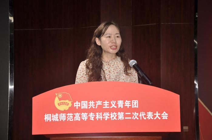 項薇代表共青團安慶市委向大會的召開表示熱烈祝賀,向出席本次大會的全體代表以及全校團員青年和團幹部們致以誠摯的問候和良好的祝願,並向學校共青團工作提出幾點希望:一是希望全體團員青年堅定聽黨話,永遠跟黨走,牢記黨的奮鬥主題就是團的行動方向,立誌做新時代好青年;二是希望廣大團學幹部弘揚師專校訓精神,創造性開展工作,在團學舞台上展現自我風采;三是希望師專各級團組織傳承紅色革命精神,牢記為黨育人、為國育才的初心使命。