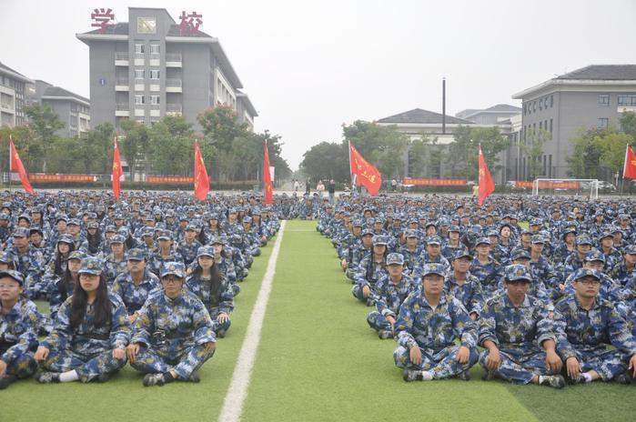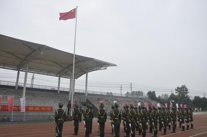一身戎裝一抹鮮紅,迎著朝陽,學生國旗護衛隊踏著整齊的步伐,步履鏗鏘,神情專注,隊形整齊劃一,列隊護旗而出。“向國旗——敬禮!”伴隨著雄壯的《義勇軍進行曲》,在師生們的注視下,五星紅旗冉冉升起。在場的千餘名師生高唱國歌,同行注目禮,2023年開學典禮暨軍訓總結表彰大會拉開帷幕。隨後進行軍訓成果展示,一支支訓練有素的軍訓隊伍走過主席台,進行軍訓成果展示並接受檢閱。