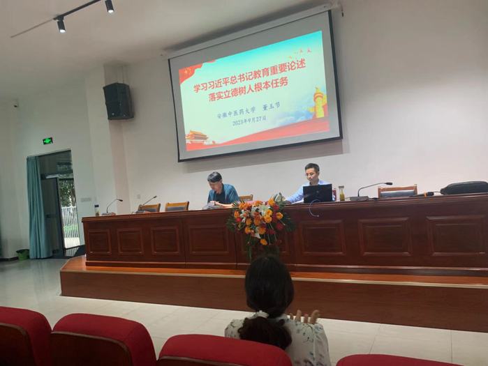 根據學校黨委的統一安排,為進一步深化學習習近平總書記關於教育重要論述,落實立德樹人根本任務,推進學校“大思政課”建設,9月27日下午,省委講師團高端宣講專家、全省高校思政課教指委辦公室主任、高職高專分教指委主任、安徽中醫藥大學馬克思主義學院院長董玉節教授應邀前來我校,作“學習習近平總書記教育重要論述,落實立德樹人根本任務”主題報告會。