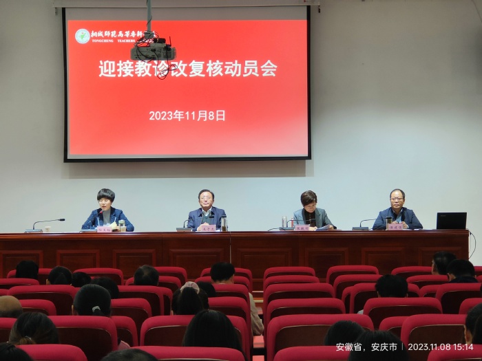 11月8日,桐城師專召開迎接教診改複核工作動員會,黨委書記王子龍,黨委副書記、紀委書記張敏麗,副校長程玉梅,黨委委員、宣傳部長伍建強出席會議,各二級單位負責人、診改工作辦公室成員,全體教職員工參加會議。會議由張敏麗主持。