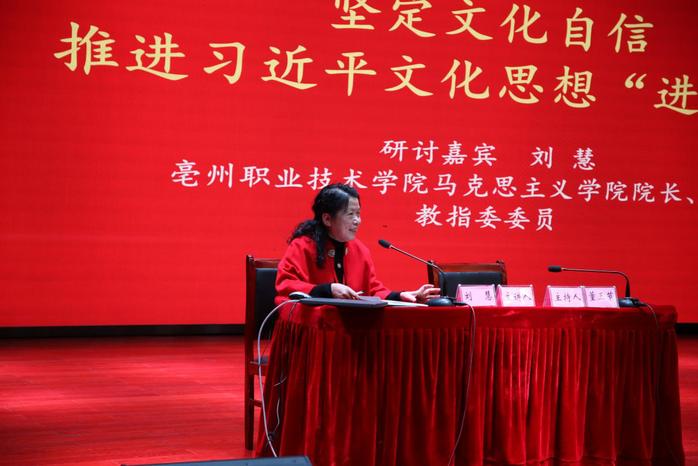 圖為亳州職業技術學院馬克思主義學院院長、教授劉慧作研討發言