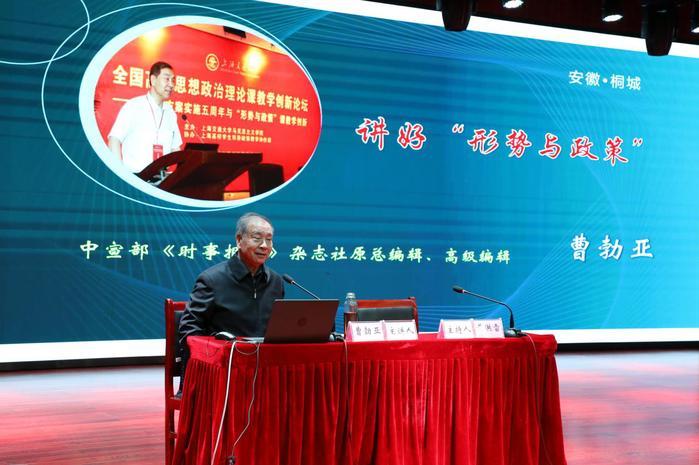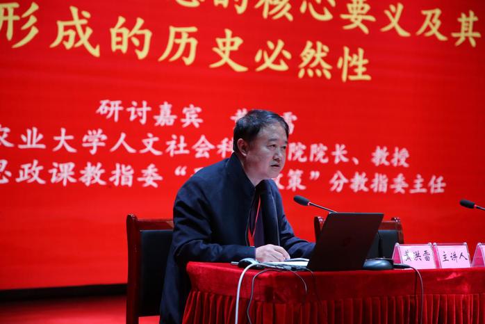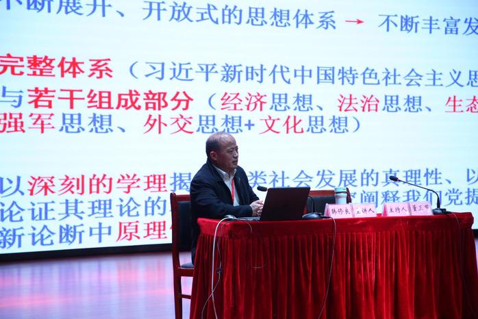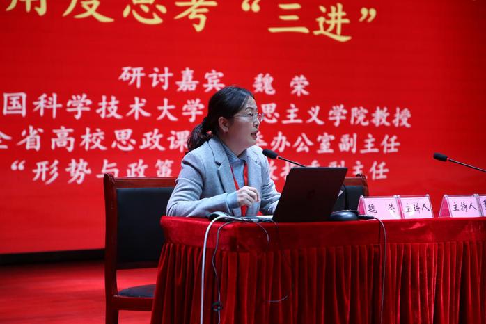 圖為全省高校思政課教指委“形勢與政策”分教指委主任黃洪雷主持主旨報告