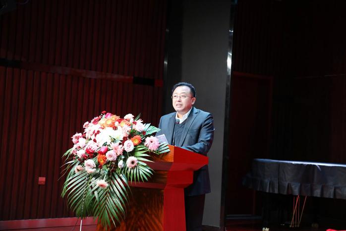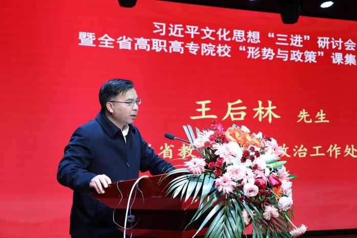 圖為全省高校思政課教指委辦公室主任、高職高專分教指委主任董玉節致辭