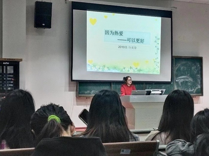 11月10日上午9點,小學教育係邀請我校2010級優秀畢業生、六安市霍邱縣河口鎮中心小學許英青老師為小學教育文科專業同學開展了主題為“因為熱愛,可以更好”的教育實習專題講座。