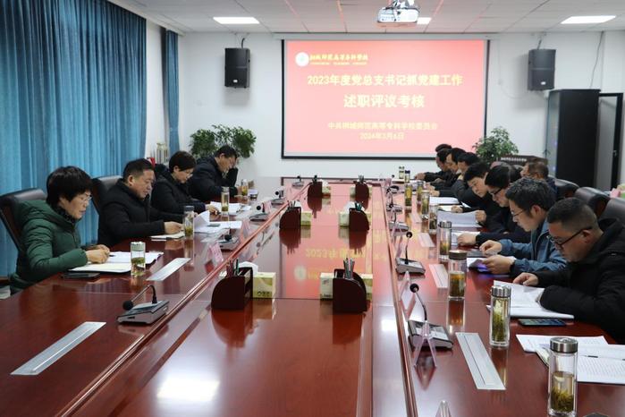 為深入貫徹落實全麵從嚴治黨要求,進一步強化各黨總支書記黨建工作責任意識,促進基層黨的建設全麵進步,3月6日下午,學校黨委開展2023年度黨總支書記抓黨建工作述職評議考核。校黨委書記王子龍,黨委副書記、紀委書記張敏麗,副校長程玉梅,黨委委員、副校長王宏偉出席了會議,各黨總支書記、副書記,各係部、處室主要負責人,總支委員,兩代表一委員參加會議,會議由張敏麗主持。