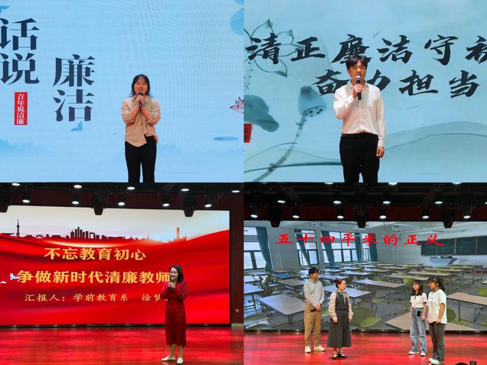 來自各係部的青年教師齊聚一堂,12組選手深度挖掘“桐城派”優秀傳統文化資源中的廉潔因素,結合自己的教育教學經驗和崗位職責,圍繞廉潔自律、教育公平、師德師風等話題,通過演講、朗誦、脫口秀、情景劇等形式講述了“廉潔、自律、青春、擔當、奉獻”的我校青年幹部故事。選手們的宣講內容既有理論深度,又有實踐溫度,充分展現了青年教師在廉潔從教方麵的深入思考和實踐成果。