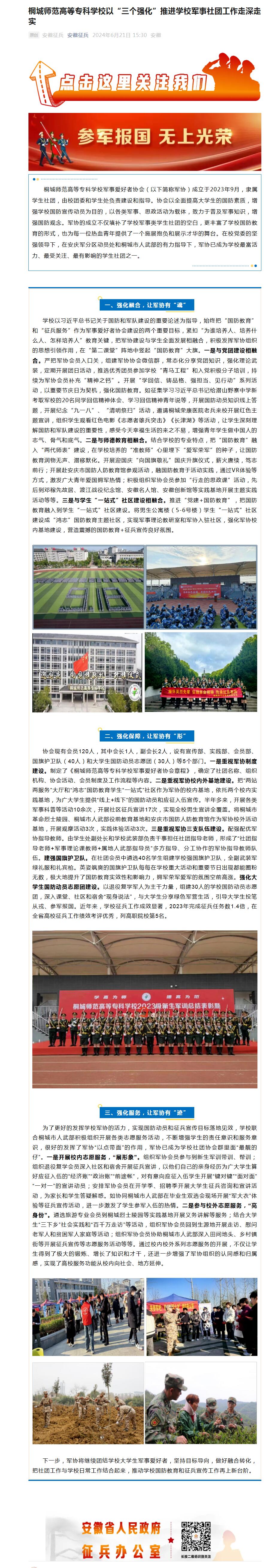 安徽征兵:桐城師範高等專科學校以“三個強化”推進學校軍事社團工作走深走實