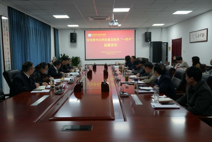 為切實加強對處室院係“一把手”和領導班子的教育監督管理,壓緊壓實基層黨組織從嚴管黨治黨主體責任和“一把手”第一責任人責任,4月3日,校黨委書記王子龍對處室院係“一把手”開展監督談話,黨委委員、副校長王宏偉,黨委委員、紀委書記汪誌耿,黨委委員、宣傳部長伍建強,黨委委員、組織部長王斌陪同談話。各處室主要負責人、黨總支書記參加談話。