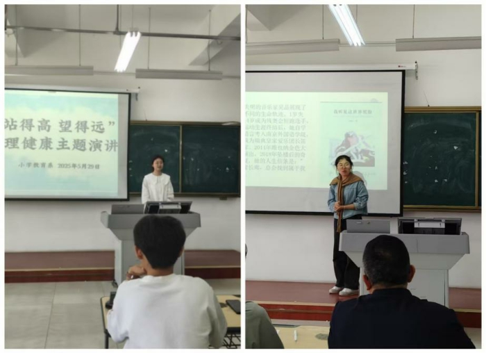 小學教育係舉辦了“站得高 望得遠”心理健康主題演講比賽,參賽選手們不僅是舞台上的主角,更化身心靈使者,通過真摯的情感和生動的案例,展示了心靈的碰撞與成長,傳遞著治愈力量,在聽眾心中播撒下關注心理健康的種子,鼓勵同學們要心向暖陽,讓青春綻放出絢麗的光彩。