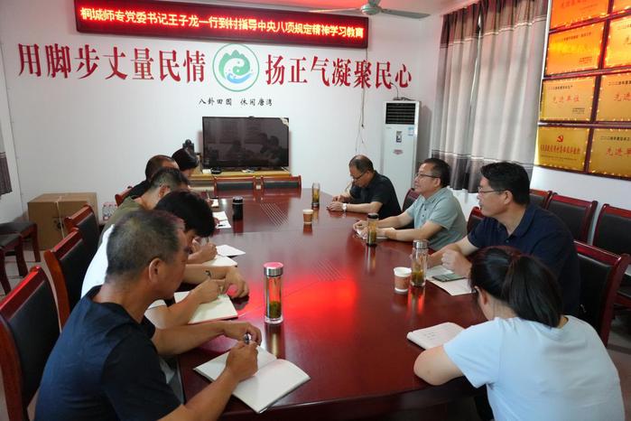 7月8日上午,校黨委書記王子龍率隊赴桐城市唐灣村開展訪企入村,麵對麵了解基層群眾需求,指導深入貫徹中央八項規定精神學習教育工作,並慰問村“兩委”及駐村工作隊。黨委委員、副校長王宏偉,黨委委員、宣傳部長伍建強陪同。