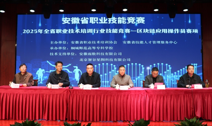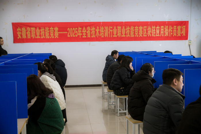 b222ee1a3101b0fee0065e36a21b5ee02025年11月23日,2025年全省技術培訓行業職業技能競賽區塊鏈應用操作員賽項在我校圓滿落幕。本次大賽由安徽省職業技術培訓協會、安徽省技能人才管理服務中心聯合主辦,吸引了全省近90組職工(教師)及學生選手同台競技,以技能比拚搭建學習交流平台,助推區塊鏈行業人才培養提質增效。