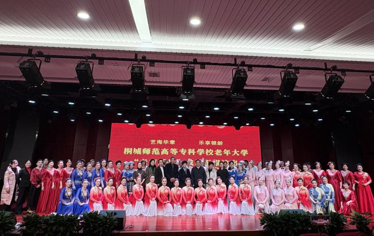 12月23日,桐城師範高等專科學校老年大學“藝海華章 樂享銀齡”老有所學成果匯報演出在音樂廳隆重舉行。校黨委書記、校老年教育委員會主任王子龍,校黨委副書記張敏麗,副校長程玉梅,黨委委員、紀委書記汪誌耿,黨委委員、宣傳部部長伍建強,黨委委員、組織部部長王斌,老年大學校長梁誌斌及老年教育工作委員會成員觀摩了匯報演出。老年大學學員觀看了演出。