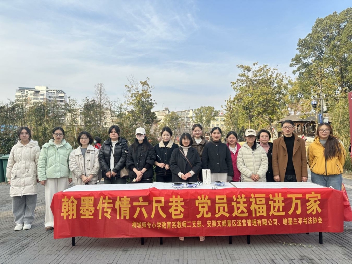 為弘揚中華優秀傳統文化,推動主題黨日與誌願服務深度融合,桐城師專小學教育係教師第二黨支部、翰墨蘭亭書法協會聯合安徽文都景區運營管理有限公司,在六尺巷景區開展“迎新春、送春聯”主題黨日活動。本次活動借助六尺巷濃厚的文化氛圍與曆史底蘊,在景區內為遊客與附近居民書寫春聯、傳遞祝福。