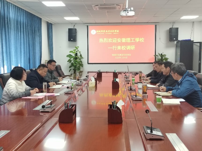 2026年1月15日上午,安徽理工學校黨委書記朱靈群,黨委副書記、校長李海軍,黨委委員、教務處主任阮媛一行蒞臨學校考察交流。校黨委副書記、校長江貴生熱情接待,黨委委員、組織部長王斌,黨委委員陳濤及教務處、小學教育係負責同誌陪同座談。雙方就深化校際合作、共促區域職業教育高質量發展進行了深入的研討。