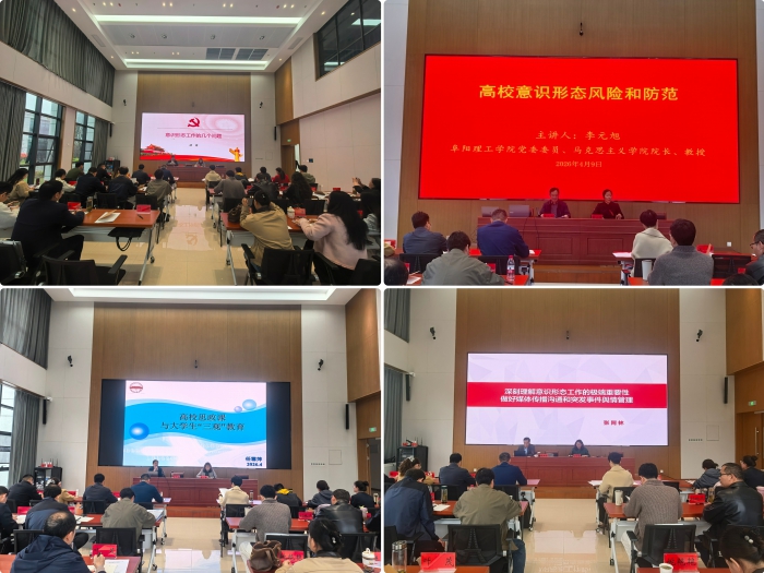 此次培訓班課程內容豐富,針對性強。安徽省社會科學院黨組成員、副院長胡靖教授以《意識形態工作幾個問題》為題,係e8ce77b015325d8e5b6b96d010815467統分析了意識形態概念、內涵、本質、作用,並結合具體案例做了細致剖析;阜陽理工學院黨委委員、馬克思主義學院院長李元旭教授從《高校意識形態風險防範》角度,詳細闡述了意識形態工作基本理論、風險分析、防範策略;原合肥工業大學文法學院副院長,安徽省哲學學會副會長兼秘書長任雪萍教授講授《高校思政課與大學生“三觀”教育》,對高校思政課提升“三觀”教育的心理學依據、教育現狀、提升“三觀”教育的方法路徑做了深入分析講解;安徽廣播電視台原黨委委員、副台長張阿林教授以《深刻理解意識形態工作的極端重要性,做好媒體傳播溝通和突發事件輿情管理》為題,結合當下網絡意識形態領域的傳播規律與演變特征,詳細闡述了輿情監測預警、源頭治理、引導處置的關鍵策略與實戰技巧。