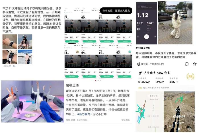 告別“宅家躺平”,擁抱活力假期。“活力暖冬·運動不打烊”寒假打卡活動以21天習慣養成為核心,鼓勵同學們走出舒適區,用運動點亮假期生活。跑步、跳繩、瑜伽、舞蹈……,每一位同學都在以自己喜歡的方式充實著假期。