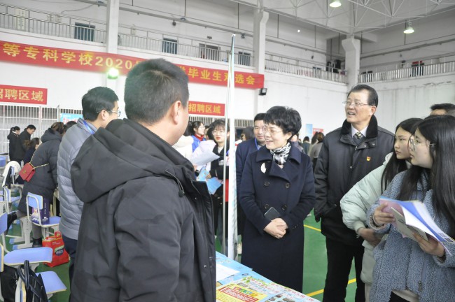 學校領導高度重視,黨委書記朱宏、副校長程玉梅深入現場指導工作,對用人單位的到來表示歡迎,了解招聘單位的相關信息;勉勵畢業生在擇業過程中要腳踏實地,充分準備,積極展現自我,早日找到滿意的工作。各二級機構負責同誌、畢業班輔導員也來到雙選會現場,積極指導學生求職。本次雙選會也得到了安徽省大中專畢業生就業指導中心大力支持,且中心領導現場督導。