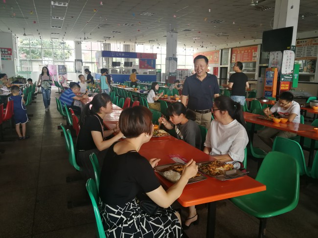 吳登明一行在餐廳詳細了解了學員們的膳食安排,並反複強調:夏季高溫,一定要保證食品的新鮮、衛生,同時,要盡力讓學員吃得安心,吃得開心。