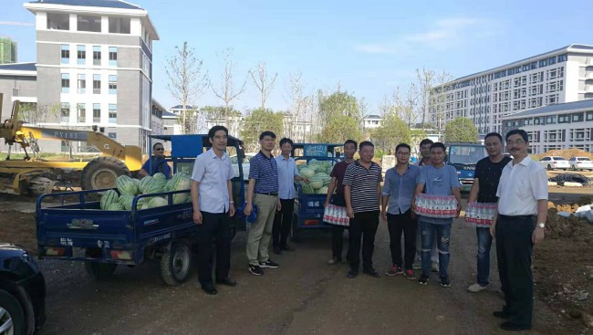 8月2日上午,校長沈波看望堅守一線的新校區工程建設者,感謝他們在持續高溫天氣下堅守崗位,默默奉獻,並為他們送去西瓜、礦泉水等防暑降溫物品。