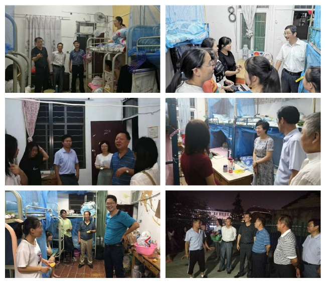 晚7時,校領導走進新生宿舍,與新生及家長親切交流,了解學生的生活需求,勉勵同學們入學後要誌存高遠,腳踏實地,奮發成才。8時許,在浴室門前小廣場,校領導要求管理人員在確保安全的基礎上,做好優質服務,要像對待自己的孩子一樣周到、細心。