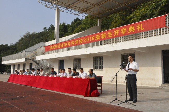 9月16日上午,學校在操場隆重舉行開學典禮。黨委副書記、校長沈波,副校長程玉梅,黨委委員、組織人事處處長王宏偉出席典禮,二級機構主要負責同誌,輔導員、班主任,全體學生參加。校黨委書記朱宏主持。