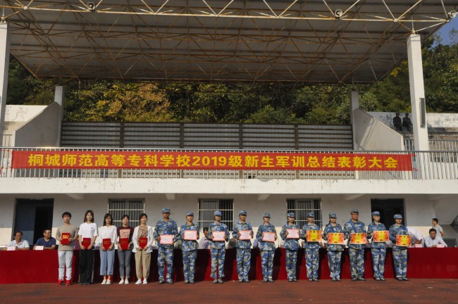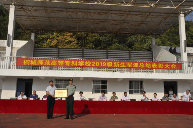 9月29日上午,學校隆重舉行2019級新生軍訓總結表彰大會。校領導朱宏、沈波、吳登明、程玉梅、陳發明、王宏偉,桐城市人武部軍事科科長孟凡林,二級機構主要負責同誌在主席台就坐。全體教官、新生輔導員和班主任、2019級全體新生參加大會。副校長程玉梅主持。