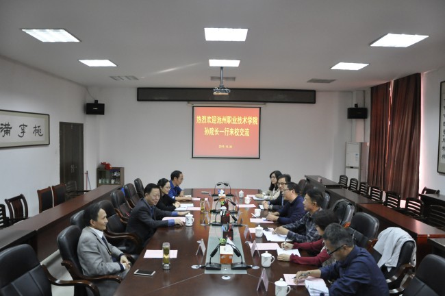 10月30日上午,池州職業技術學院副院長孫垚一行六人來我校考察交流。副校長吳登明熱情接待了客人並主持交流會。