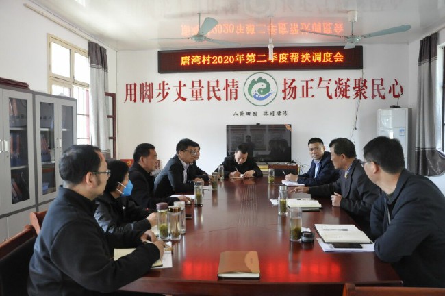 唐灣村兩委通報了脫貧攻堅工作進展情況並介紹了2020年村發展規劃和實施意見。朱宏肯定了唐灣村取得的成績,指出,今年是脫貧攻堅工作收官之年,由於遭遇疫情影響,各項工作任務更重、要求更高。就做好當前脫貧工作,朱宏提出四點意見:第一、做好統籌規劃。各方力量在脫貧攻堅工作中要統籌規劃好,把工作做到位。第二、抓實目標責任。脫貧攻堅責任落實體現工作態度,體現以人民為中心發展思想,要牢記“四個意識”,堅定脫貧攻堅責任擔當。第三、補齊工作短板。落實扶貧政策補齊工作短板要準確執行到位,梳理把握根源症結,真招實策解決問題。第四、扛起責任擔當。幫扶單位和個人要真正擔負責任,既是政治責任體現也是使命責任擔當。要在服務社會同時,強化教育教職工扛起社會責任意識。