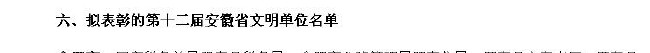 根據省文明委《關於開展安徽省文明城市(城區、村鎮)評選工作的通知》(皖文明[2019]5號)、《關於評選第十二屆安徽省文明單位的通知》(皖文明[2019]7號)要求,在層層申報、認真考核並廣泛征求部門意見的基礎上,報經省委、省政府、省文明委主要領導同意,形成了擬表彰的安徽省文明城市(城區)、文明村鎮、文明單位名單,現予公示,接受社會各界監督。如有異議,請在公示期內以郵件、電話等方式向省文明辦反映。