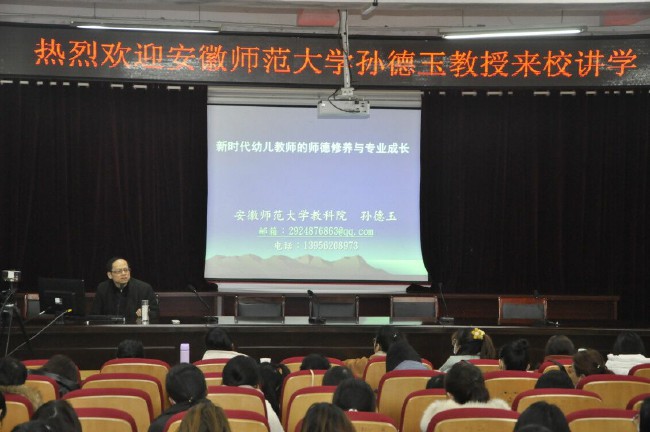 12月1日,受學校邀請,安徽師範大學教科院孫德玉教授在學校以智樓報告廳作題為“新時代幼兒教師的師德修養與專業成長”的師德講座。校長沈波與今年新入職的教師、思政教師及相關處(室)、係領導聆聽了報告。安慶市學前教育雙培置換項目的幼兒園園長和幼兒園骨幹教師參加了報告會。